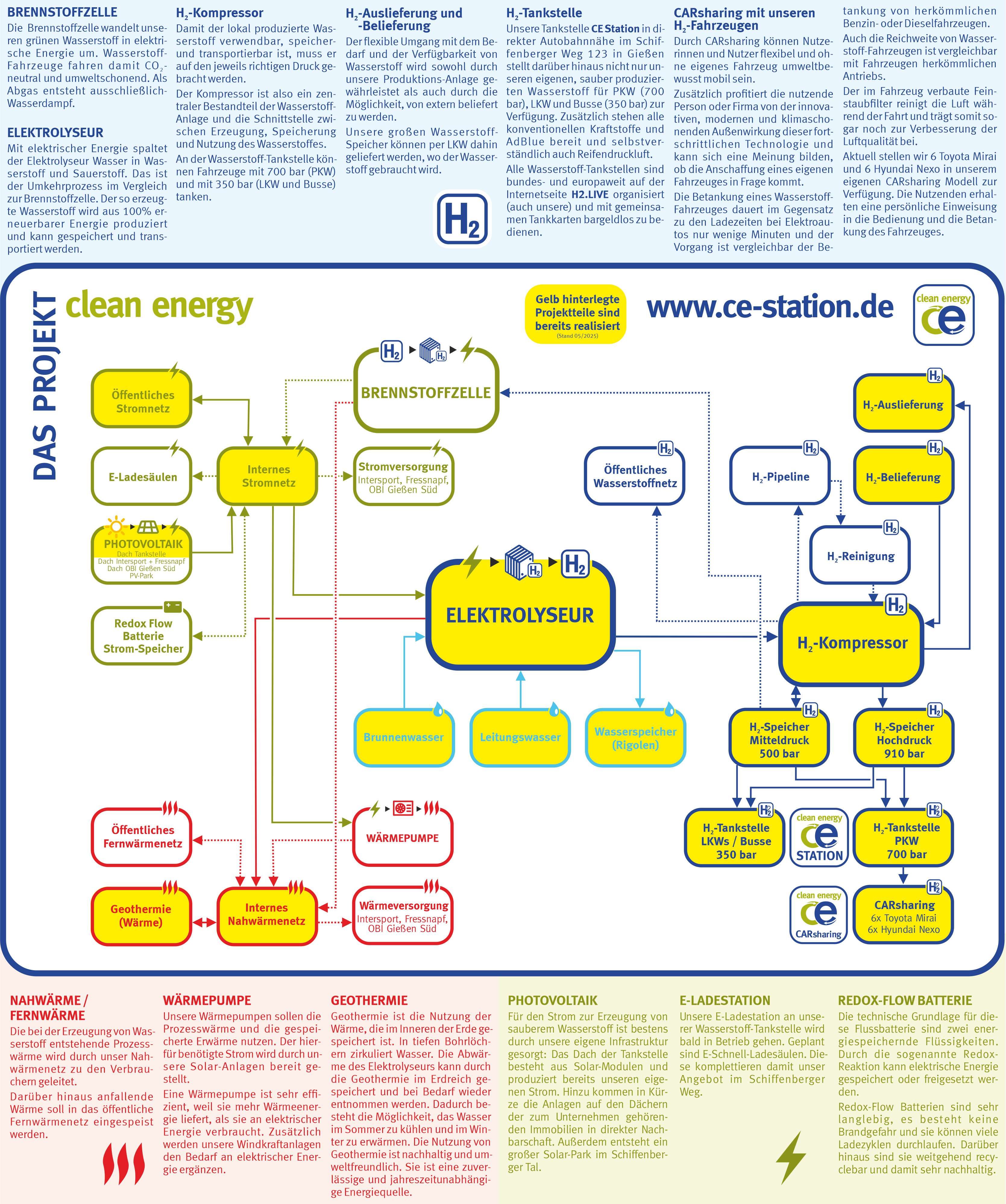 Auf den ersten Blick erkennt man im Schiffenberger Weg 123 in Gießen nicht viel mehr als eine normale Selbstbedienungs-Tankstelle. Dahinter verbirgt sich ein ausgeklügeltes, hochkomplexes Projekt, in dem alle modernen Techniken rund um Wasserstoff, Strom und Wärme ineinander greifen.